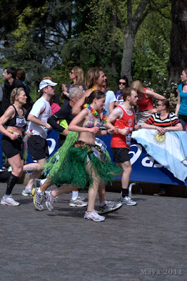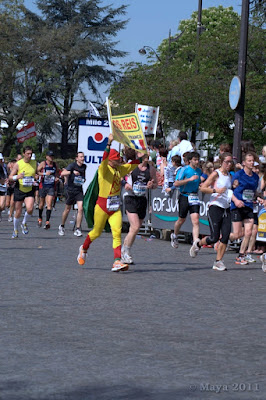 Dès la ligne de départ, franchie, je déclenche mon chrono et je me mets à courir. Je pars doucement afin de m'assurer qu'Alexis est bien installé. Et de grandes salves d'applaudissements nous encouragent, je ne le vois pas mais je sais qu'Alexis a un large sourire !